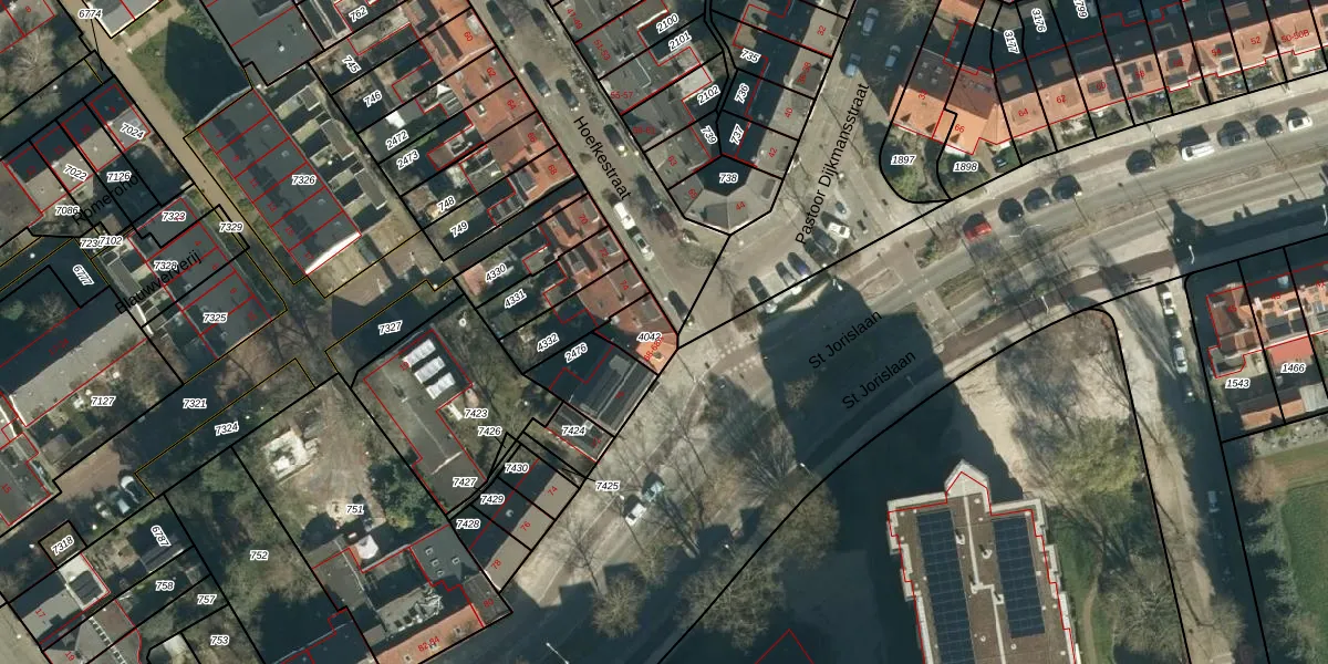 St Jorislaan 68 is gelegen op kadastraal perceel STM00E4042. Deze kadastrale aanduiding is uniek en wordt gebruikt door het Kadaster om eigendomsrechten en andere zakelijke rechten vast te leggen. Het perceel maakt onderdeel uit van de kadastrale gemeente Stratum.