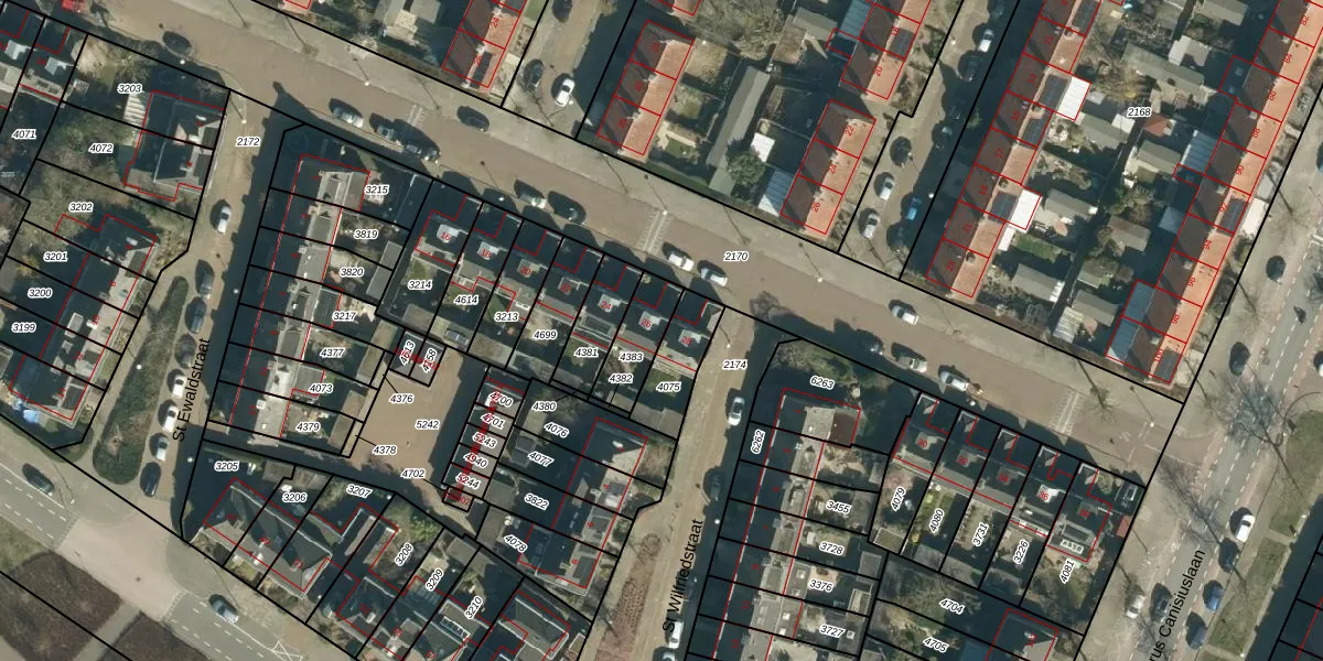 Het adres is gelegen op perceel 4383 in de sectie E en de kadastrale gemeente Stratum. De kadastrale aanduiding is aldus STM00-E-4383. Het perceel is kleiner dan gemiddeld in Stratum. Het perceel is 141 m² groot, terwijl het gemiddelde ligt op 909,28 m². Het grootste perceel in de kadastrale gemeente is 92,9 ha. Het kleinste perceel heeft een oppervlakte van 0 m². Op het perceel bevinden zich geen andere adressen. De huidige grenzen van het perceel zijn digitaal in de Basisregistratie Kadaster (BRK) geregistreerd op 17-07-2006.