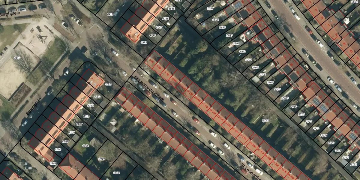 St Leonardusstraat 11 is gelegen op kadastraal perceel STM00E2723. Deze kadastrale aanduiding is uniek en wordt gebruikt door het Kadaster om eigendomsrechten en andere zakelijke rechten vast te leggen. Het perceel maakt onderdeel uit van de kadastrale gemeente Stratum.