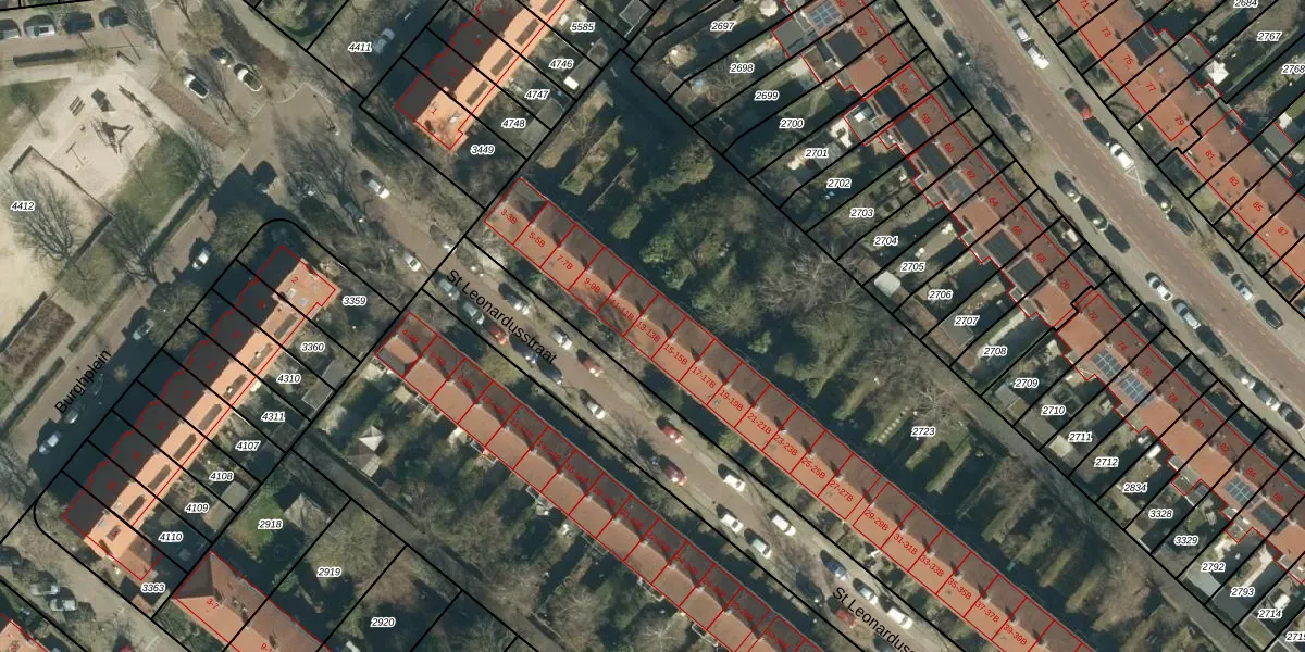St Leonardusstraat 13-B is gelegen op kadastraal perceel STM00E2723. Deze kadastrale aanduiding is uniek en wordt gebruikt door het Kadaster om eigendomsrechten en andere zakelijke rechten vast te leggen. Het perceel maakt onderdeel uit van de kadastrale gemeente Stratum.