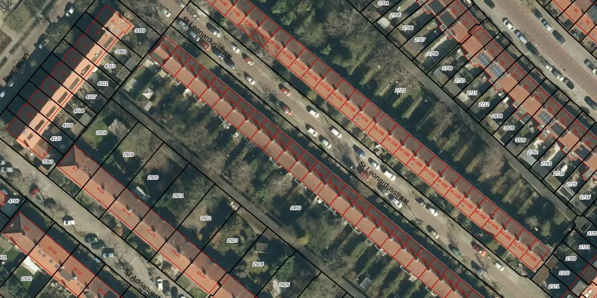 St Leonardusstraat 24 is gelegen op kadastraal perceel STM00E1459. Deze kadastrale aanduiding is uniek en wordt gebruikt door het Kadaster om eigendomsrechten en andere zakelijke rechten vast te leggen. Het perceel maakt onderdeel uit van de kadastrale gemeente Stratum.