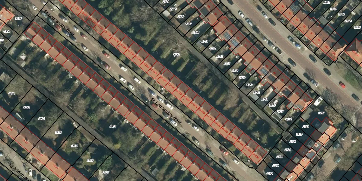 St Leonardusstraat 33-B is gelegen op kadastraal perceel STM00E2723. Deze kadastrale aanduiding is uniek en wordt gebruikt door het Kadaster om eigendomsrechten en andere zakelijke rechten vast te leggen. Het perceel maakt onderdeel uit van de kadastrale gemeente Stratum.