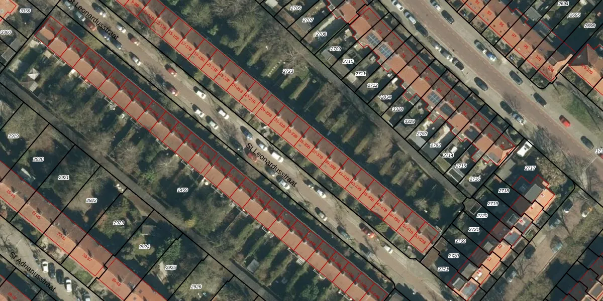 St Leonardusstraat 35 is gelegen op kadastraal perceel STM00E2723. Deze kadastrale aanduiding is uniek en wordt gebruikt door het Kadaster om eigendomsrechten en andere zakelijke rechten vast te leggen. Het perceel maakt onderdeel uit van de kadastrale gemeente Stratum.