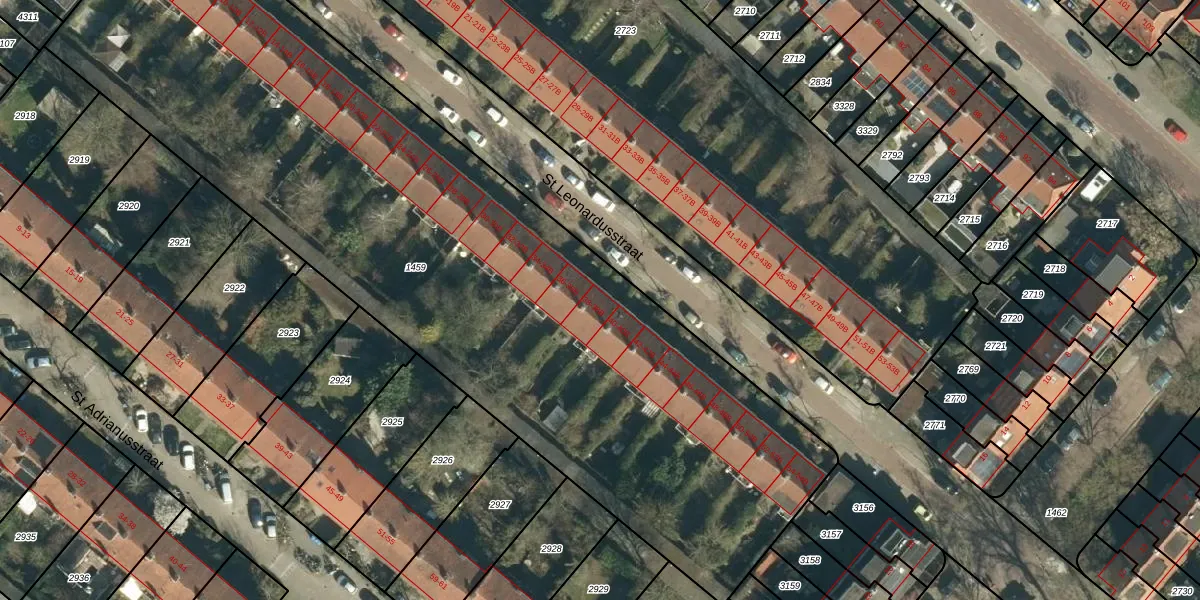 Het perceel waarop St Leonardusstraat 38 staat heeft een oppervlakte van 4618 m². Dit is een zeer groot perceel. De perceeloppervlakte wordt geregistreerd door het Kadaster. Gedetailleerde informatie over de maten van dit perceel kunt u vinden in het rapport Kadastrale kaart met maatvoering van St Leonardusstraat 38.