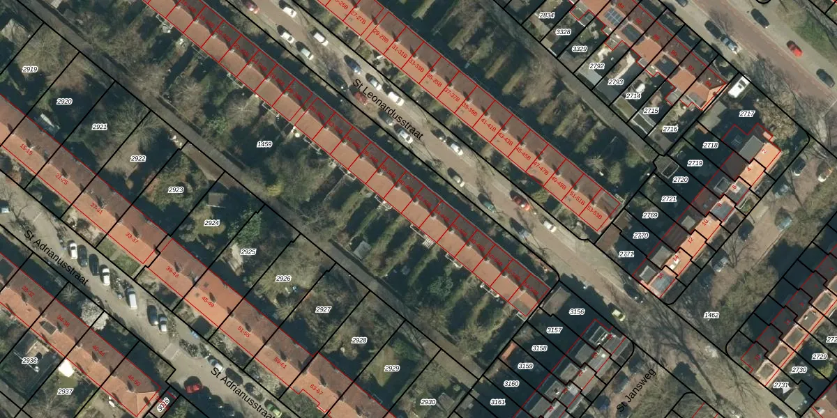 St Leonardusstraat 42-B is gelegen op kadastraal perceel STM00E1459. Deze kadastrale aanduiding is uniek en wordt gebruikt door het Kadaster om eigendomsrechten en andere zakelijke rechten vast te leggen. Het perceel maakt onderdeel uit van de kadastrale gemeente Stratum.