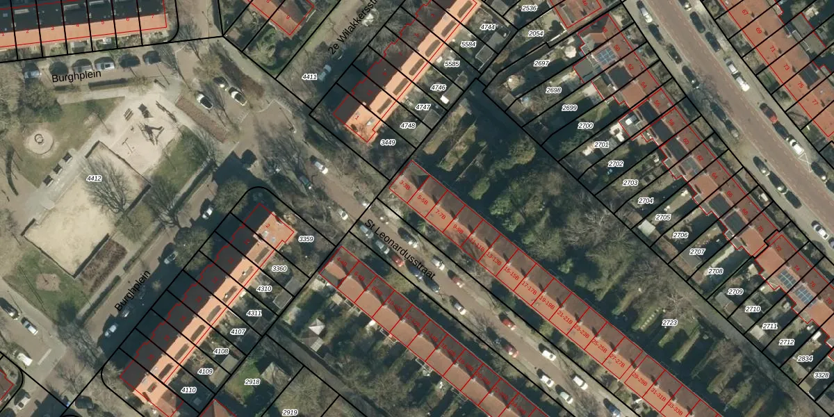 St Leonardusstraat 5 is gelegen op kadastraal perceel STM00E2723. Deze kadastrale aanduiding is uniek en wordt gebruikt door het Kadaster om eigendomsrechten en andere zakelijke rechten vast te leggen. Het perceel maakt onderdeel uit van de kadastrale gemeente Stratum.