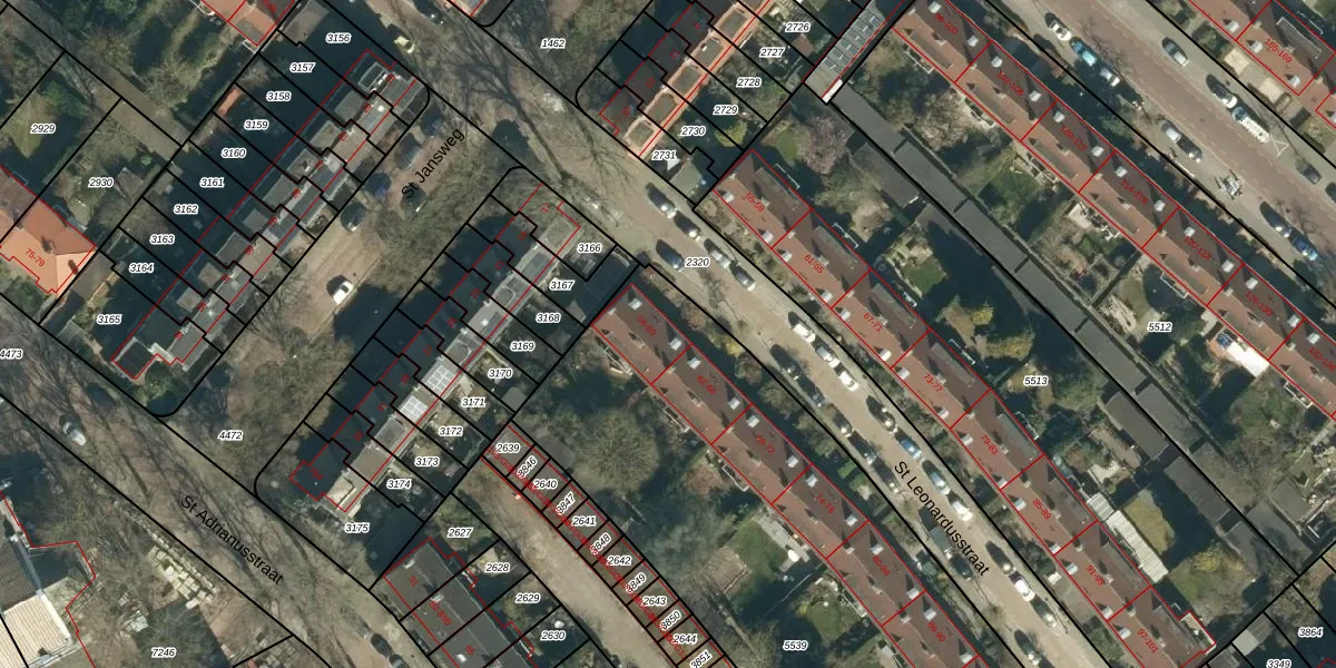 St Leonardusstraat 58 is gelegen op kadastraal perceel STM00E5539. Deze kadastrale aanduiding is uniek en wordt gebruikt door het Kadaster om eigendomsrechten en andere zakelijke rechten vast te leggen. Het perceel maakt onderdeel uit van de kadastrale gemeente Stratum.