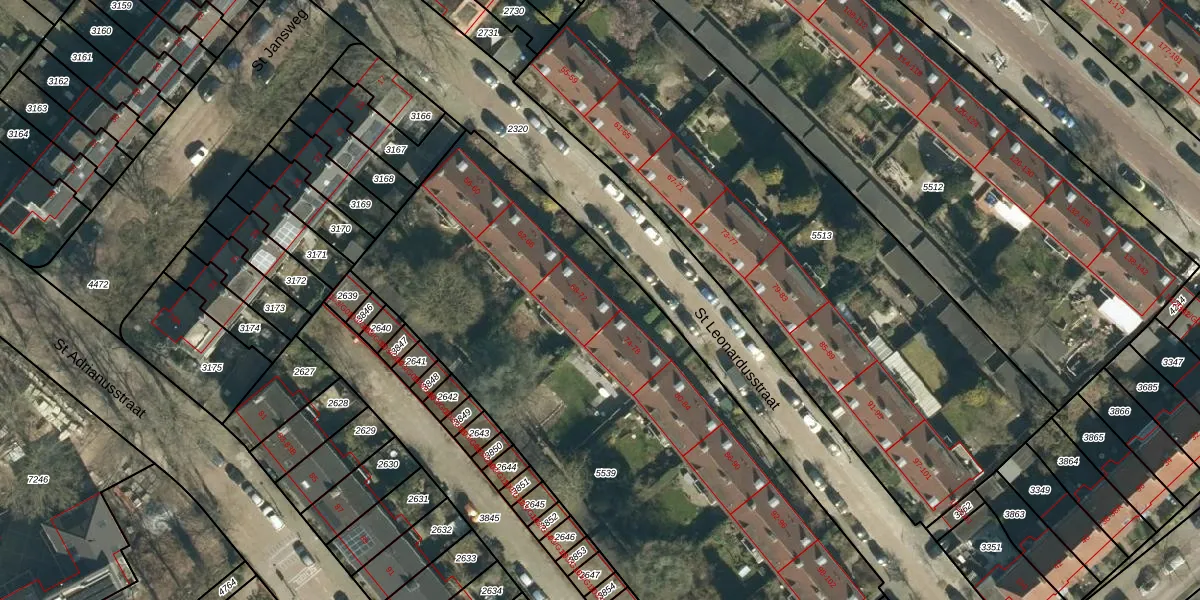 St Leonardusstraat 70 is gelegen op kadastraal perceel STM00E5539. Deze kadastrale aanduiding is uniek en wordt gebruikt door het Kadaster om eigendomsrechten en andere zakelijke rechten vast te leggen. Het perceel maakt onderdeel uit van de kadastrale gemeente Stratum.