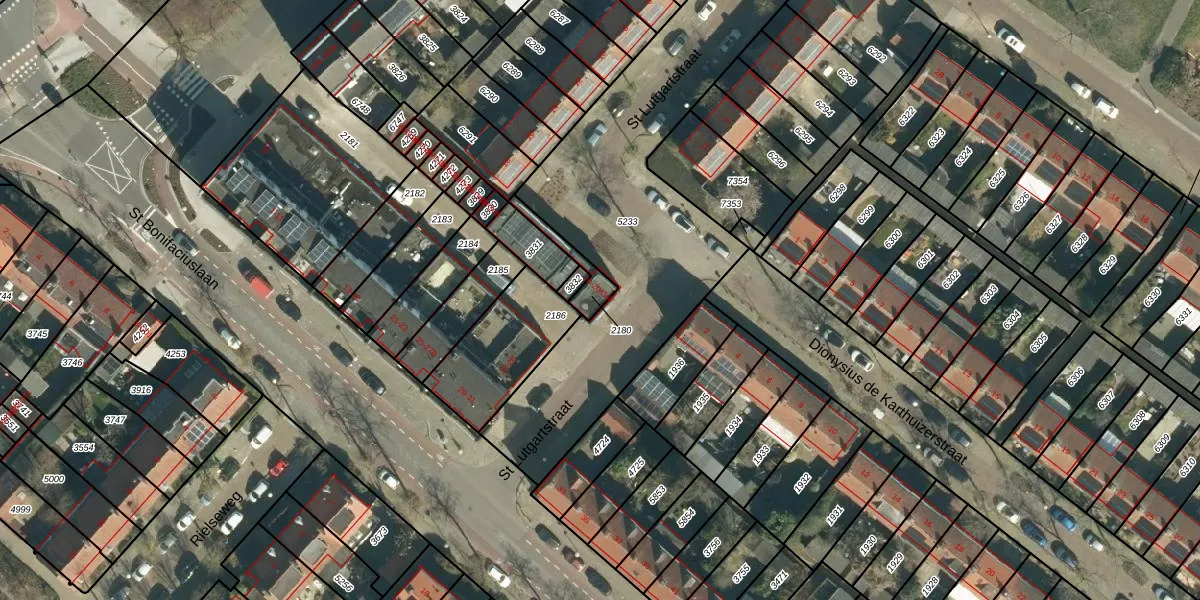 St Lutgartstraat 20-G01 is gelegen op kadastraal perceel STM00E2180. Deze kadastrale aanduiding is uniek en wordt gebruikt door het Kadaster om eigendomsrechten en andere zakelijke rechten vast te leggen. Het perceel maakt onderdeel uit van de kadastrale gemeente Stratum.