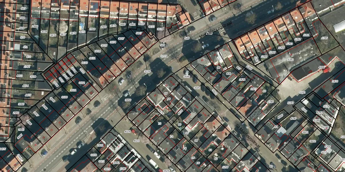 Het perceel waarop St Martinusstraat 2-B staat heeft een oppervlakte van 87 m². Dit is een klein perceel. De perceeloppervlakte wordt geregistreerd door het Kadaster. Gedetailleerde informatie over de maten van dit perceel kunt u vinden in het rapport Kadastrale kaart met maatvoering van St Martinusstraat 2-B.