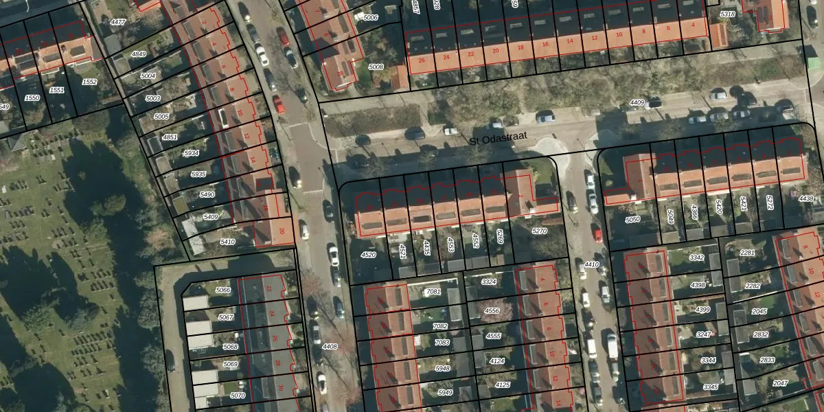 Het perceel waarop St Odastraat 19 staat heeft een oppervlakte van 150 m². Dit is een middelgroot perceel. De perceeloppervlakte wordt geregistreerd door het Kadaster. Gedetailleerde informatie over de maten van dit perceel kunt u vinden in het rapport Kadastrale kaart met maatvoering van St Odastraat 19.