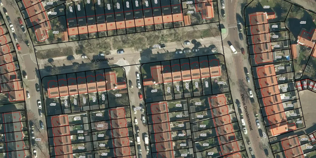 St Odulphusstraat 1 is gelegen op kadastraal perceel STM00E5050. Deze kadastrale aanduiding is uniek en wordt gebruikt door het Kadaster om eigendomsrechten en andere zakelijke rechten vast te leggen. Het perceel maakt onderdeel uit van de kadastrale gemeente Stratum.