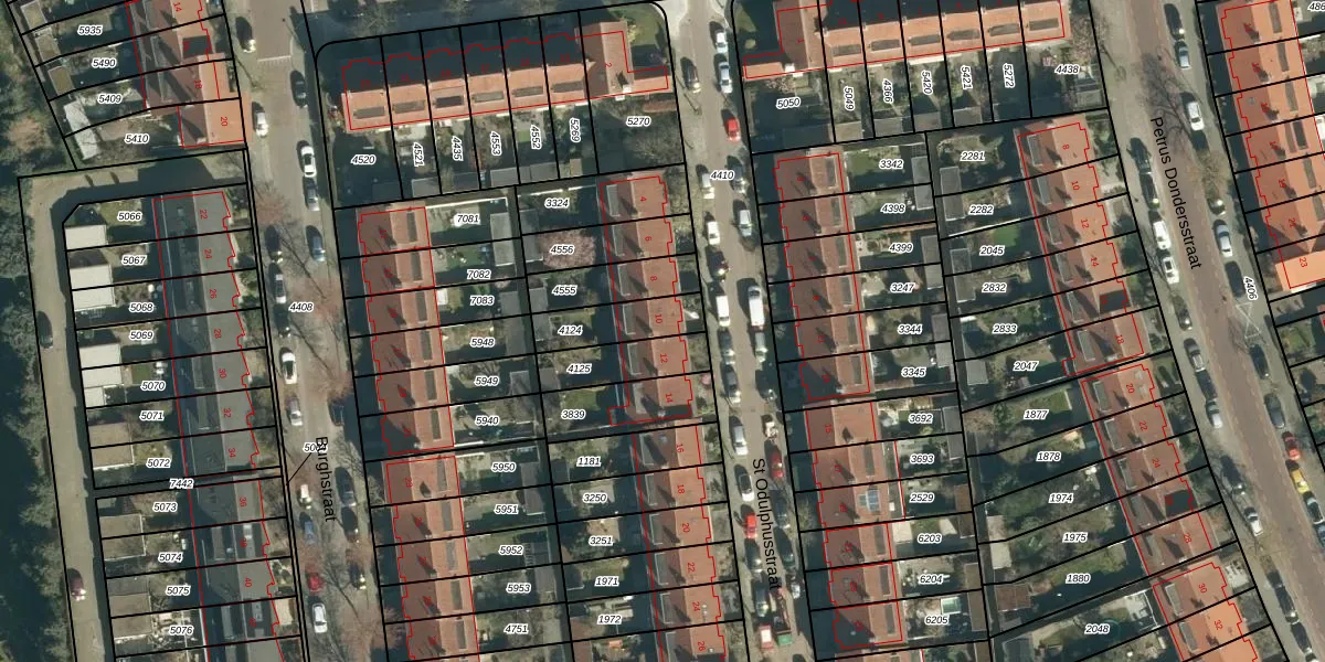 St Odulphusstraat 10 is gelegen op kadastraal perceel STM00E4124. Deze kadastrale aanduiding is uniek en wordt gebruikt door het Kadaster om eigendomsrechten en andere zakelijke rechten vast te leggen. Het perceel maakt onderdeel uit van de kadastrale gemeente Stratum.