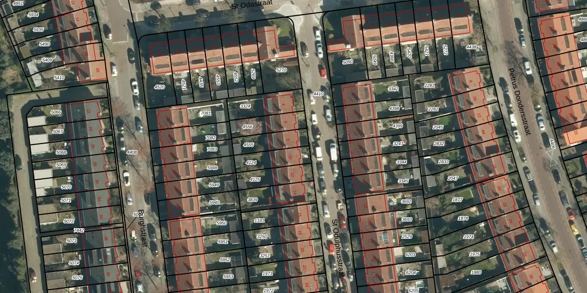 St Odulphusstraat 8 is gelegen op kadastraal perceel STM00E4555. Deze kadastrale aanduiding is uniek en wordt gebruikt door het Kadaster om eigendomsrechten en andere zakelijke rechten vast te leggen. Het perceel maakt onderdeel uit van de kadastrale gemeente Stratum.