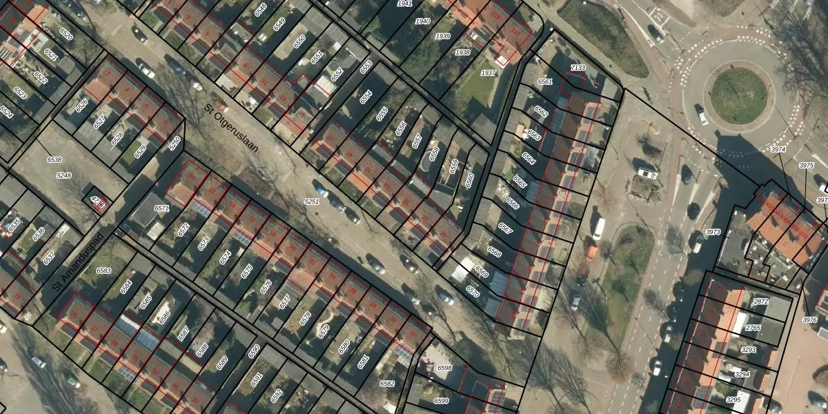 St Otgeruslaan 25 is gelegen op kadastraal perceel STM00E6558. Deze kadastrale aanduiding is uniek en wordt gebruikt door het Kadaster om eigendomsrechten en andere zakelijke rechten vast te leggen. Het perceel maakt onderdeel uit van de kadastrale gemeente Stratum.