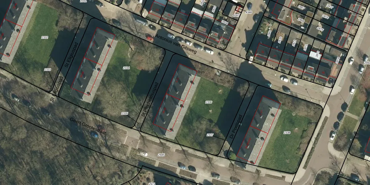 Het perceel waarop St Plechelmuspad 17 staat heeft een oppervlakte van 2000 m². Dit is een zeer groot perceel. De perceeloppervlakte wordt geregistreerd door het Kadaster. Gedetailleerde informatie over de maten van dit perceel kunt u vinden in het rapport Kadastrale kaart met maatvoering van St Plechelmuspad 17.