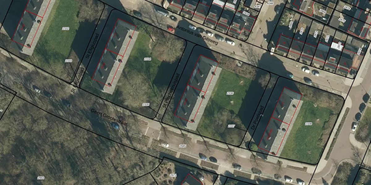 Het perceel waarop St Plechelmuspad 19 staat heeft een oppervlakte van 2000 m². Dit is een zeer groot perceel. De perceeloppervlakte wordt geregistreerd door het Kadaster. Gedetailleerde informatie over de maten van dit perceel kunt u vinden in het rapport Kadastrale kaart met maatvoering van St Plechelmuspad 19.