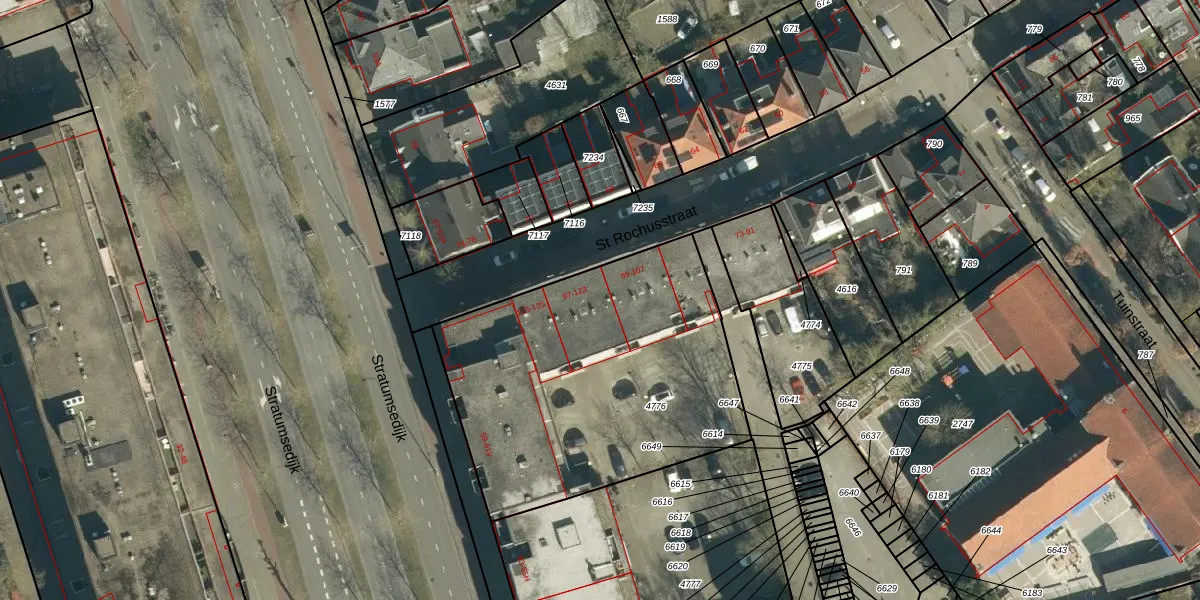 St Rochusstraat 101 is gelegen op kadastraal perceel STM00E4776. Deze kadastrale aanduiding is uniek en wordt gebruikt door het Kadaster om eigendomsrechten en andere zakelijke rechten vast te leggen. Het perceel maakt onderdeel uit van de kadastrale gemeente Stratum.