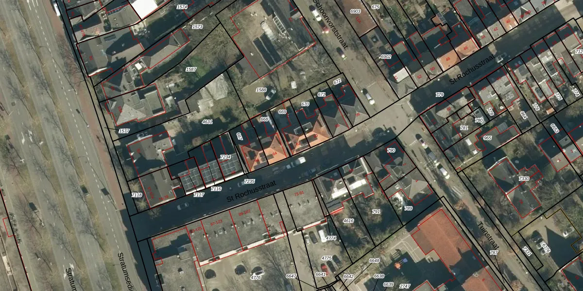 St Rochusstraat 62 is gelegen op kadastraal perceel STM00E669. Deze kadastrale aanduiding is uniek en wordt gebruikt door het Kadaster om eigendomsrechten en andere zakelijke rechten vast te leggen. Het perceel maakt onderdeel uit van de kadastrale gemeente Stratum.