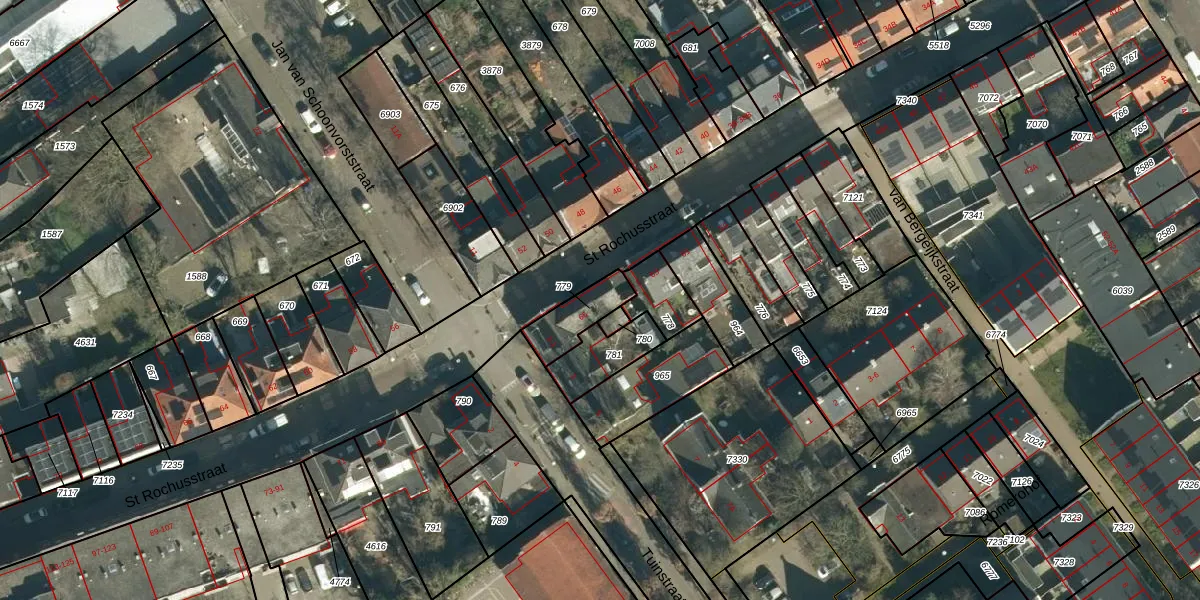Het perceel waarop St Rochusstraat 65 staat heeft een oppervlakte van 122 m². Dit is een middelgroot perceel. De perceeloppervlakte wordt geregistreerd door het Kadaster. Gedetailleerde informatie over de maten van dit perceel kunt u vinden in het rapport Kadastrale kaart met maatvoering van St Rochusstraat 65.