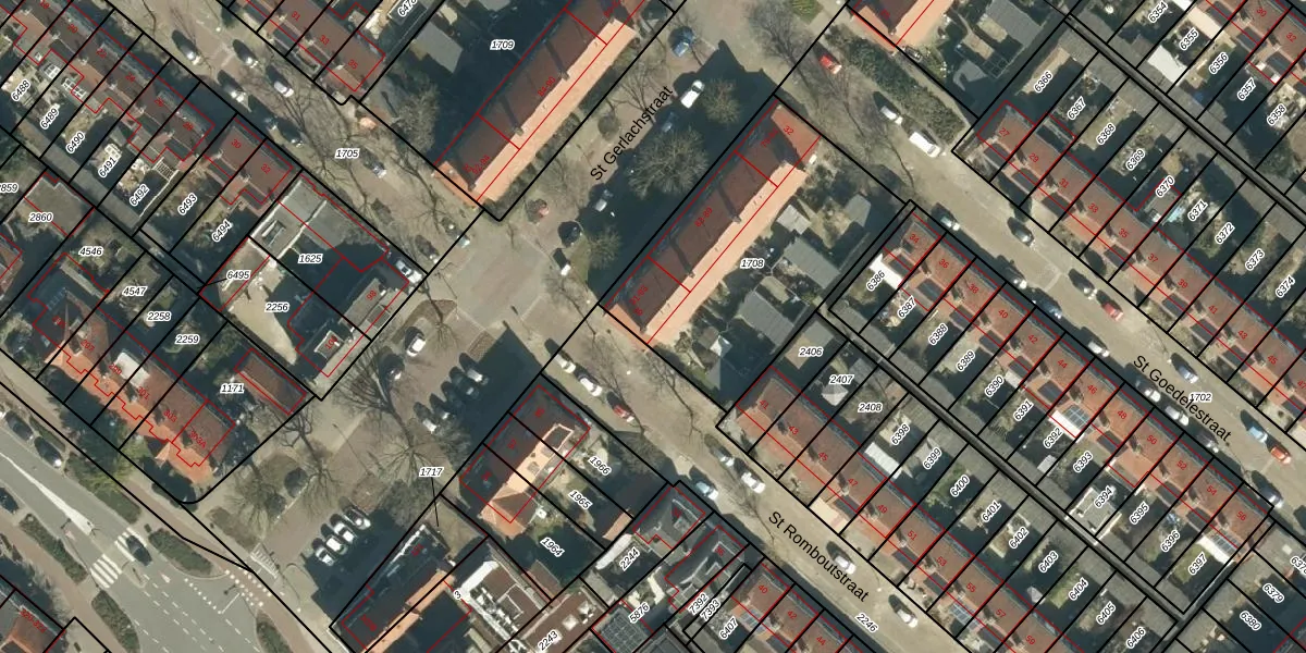 Het perceel waarop St Romboutstraat 39 staat heeft een oppervlakte van 1095 m². Dit is een zeer groot perceel. De perceeloppervlakte wordt geregistreerd door het Kadaster. Gedetailleerde informatie over de maten van dit perceel kunt u vinden in het rapport Kadastrale kaart met maatvoering van St Romboutstraat 39.
