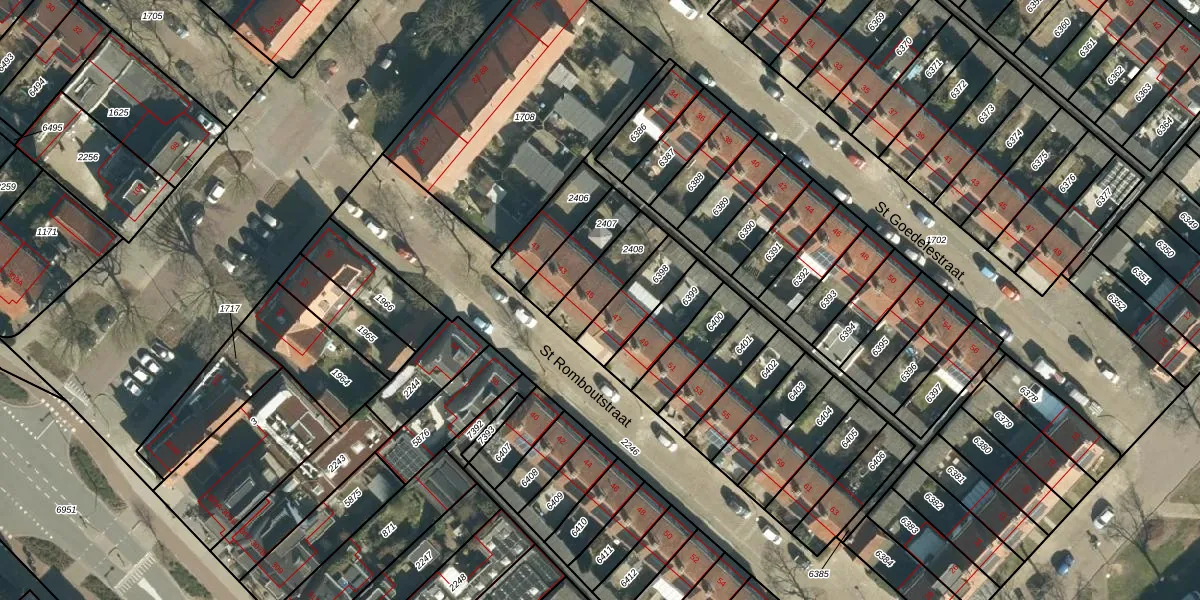 St Romboutstraat 45 is gelegen op kadastraal perceel STM00E2408. Deze kadastrale aanduiding is uniek en wordt gebruikt door het Kadaster om eigendomsrechten en andere zakelijke rechten vast te leggen. Het perceel maakt onderdeel uit van de kadastrale gemeente Stratum.