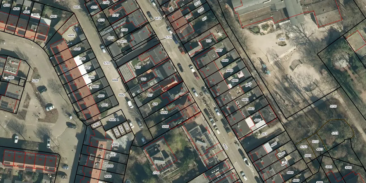 St Severusstraat 16 is gelegen op kadastraal perceel STR03C828. Deze kadastrale aanduiding is uniek en wordt gebruikt door het Kadaster om eigendomsrechten en andere zakelijke rechten vast te leggen. Het perceel maakt onderdeel uit van de kadastrale gemeente Strijp.