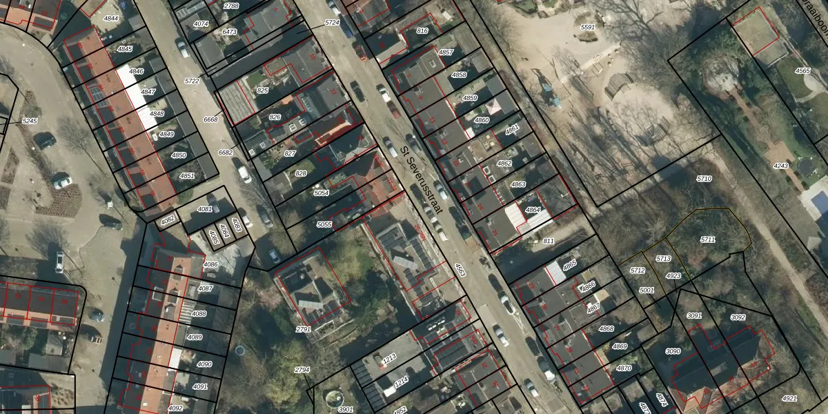 Het perceel waarop St Severusstraat 26-B staat heeft een oppervlakte van 1850 m². Dit is een zeer groot perceel. De perceeloppervlakte wordt geregistreerd door het Kadaster. Gedetailleerde informatie over de maten van dit perceel kunt u vinden in het rapport Kadastrale kaart met maatvoering van St Severusstraat 26-B.
