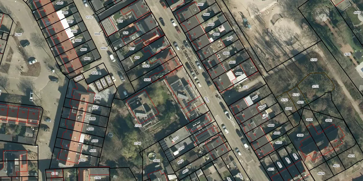 Het perceel waarop St Severusstraat 26-J staat heeft een oppervlakte van 1850 m². Dit is een zeer groot perceel. De perceeloppervlakte wordt geregistreerd door het Kadaster. Gedetailleerde informatie over de maten van dit perceel kunt u vinden in het rapport Kadastrale kaart met maatvoering van St Severusstraat 26-J.