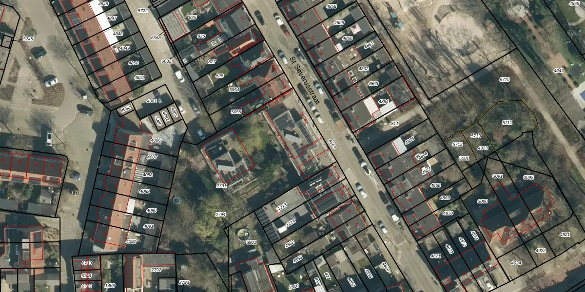 Het perceel waarop St Severusstraat 26-L staat heeft een oppervlakte van 1850 m². Dit is een zeer groot perceel. De perceeloppervlakte wordt geregistreerd door het Kadaster. Gedetailleerde informatie over de maten van dit perceel kunt u vinden in het rapport Kadastrale kaart met maatvoering van St Severusstraat 26-L.