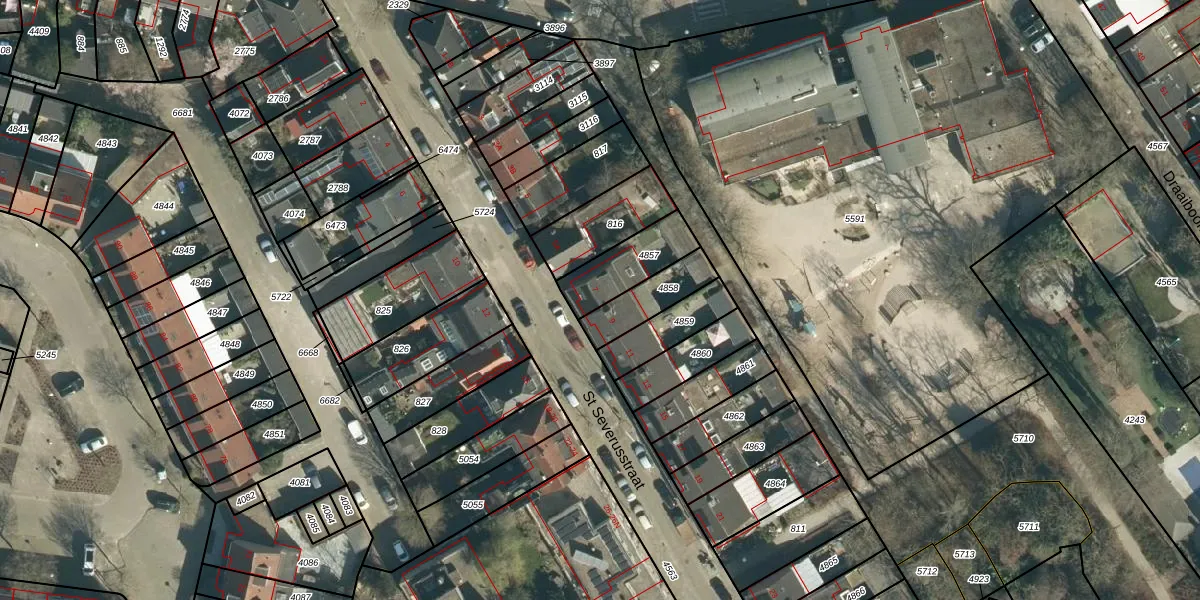 St Severusstraat 7 is gelegen op kadastraal perceel STR03C4857. Deze kadastrale aanduiding is uniek en wordt gebruikt door het Kadaster om eigendomsrechten en andere zakelijke rechten vast te leggen. Het perceel maakt onderdeel uit van de kadastrale gemeente Strijp.