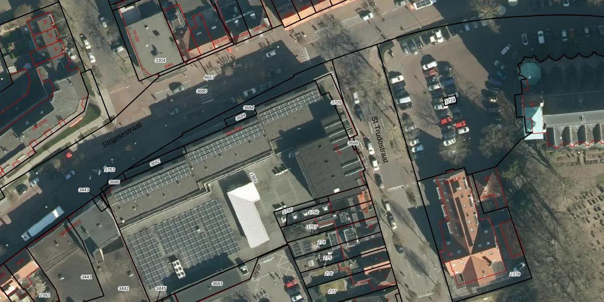 Het perceel waarop St Trudostraat 2-E staat heeft een oppervlakte van 3245 m². Dit is een zeer groot perceel. De perceeloppervlakte wordt geregistreerd door het Kadaster. Gedetailleerde informatie over de maten van dit perceel kunt u vinden in het rapport Kadastrale kaart met maatvoering van St Trudostraat 2-E.