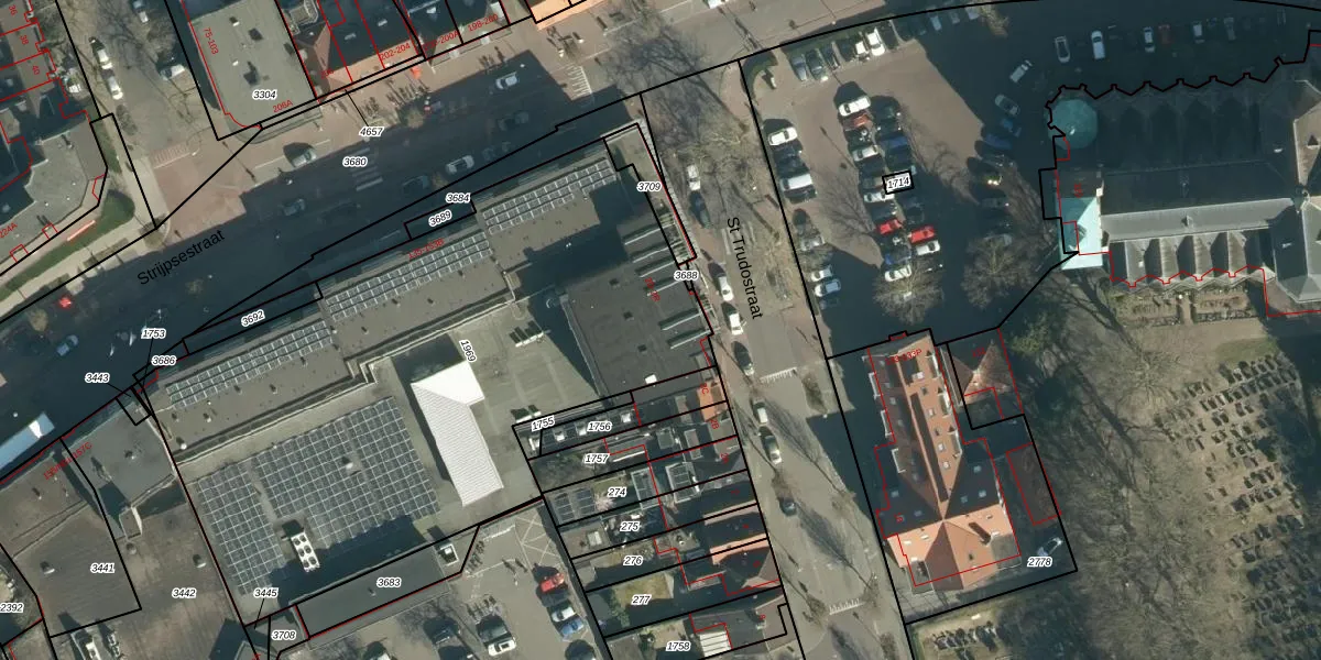 Het perceel waarop St Trudostraat 2-J staat heeft een oppervlakte van 3245 m². Dit is een zeer groot perceel. De perceeloppervlakte wordt geregistreerd door het Kadaster. Gedetailleerde informatie over de maten van dit perceel kunt u vinden in het rapport Kadastrale kaart met maatvoering van St Trudostraat 2-J.