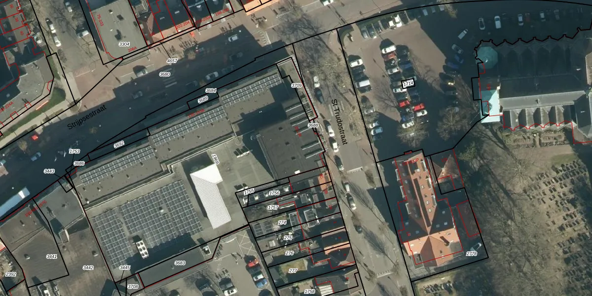 Het perceel waarop St Trudostraat 2-L staat heeft een oppervlakte van 3245 m². Dit is een zeer groot perceel. De perceeloppervlakte wordt geregistreerd door het Kadaster. Gedetailleerde informatie over de maten van dit perceel kunt u vinden in het rapport Kadastrale kaart met maatvoering van St Trudostraat 2-L.