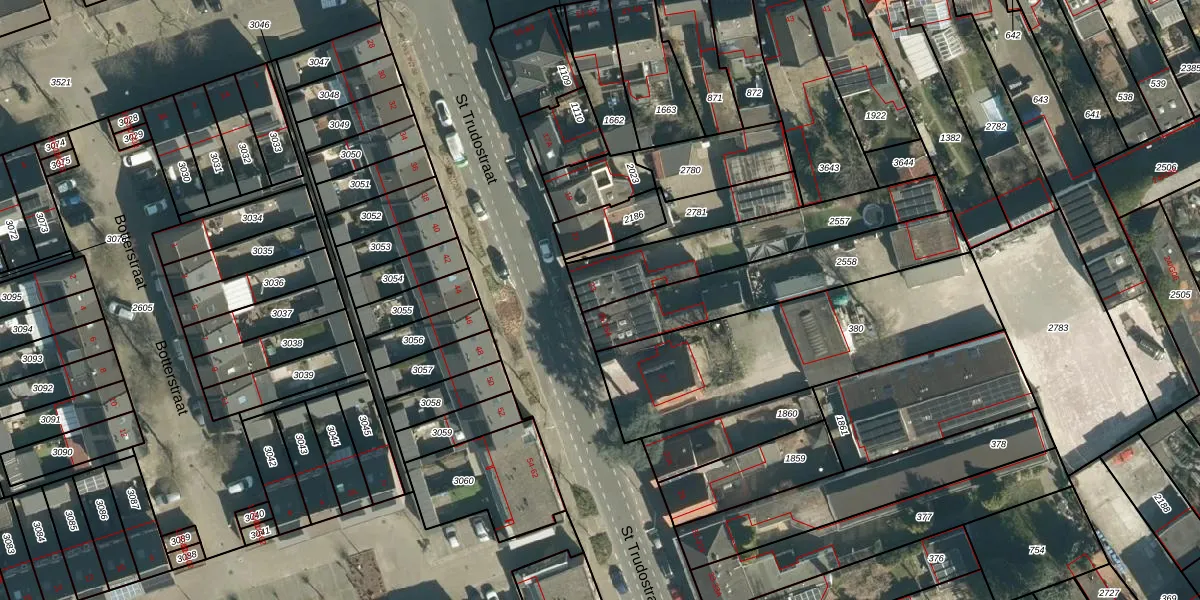 St Trudostraat 23 is gelegen op kadastraal perceel STR03D2557. Deze kadastrale aanduiding is uniek en wordt gebruikt door het Kadaster om eigendomsrechten en andere zakelijke rechten vast te leggen. Het perceel maakt onderdeel uit van de kadastrale gemeente Strijp.