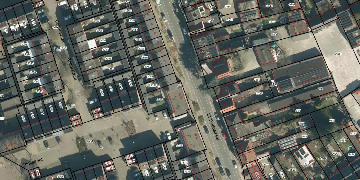 St Trudostraat 54 is gelegen op kadastraal perceel STR03D3060. Deze kadastrale aanduiding is uniek en wordt gebruikt door het Kadaster om eigendomsrechten en andere zakelijke rechten vast te leggen. Het perceel maakt onderdeel uit van de kadastrale gemeente Strijp.