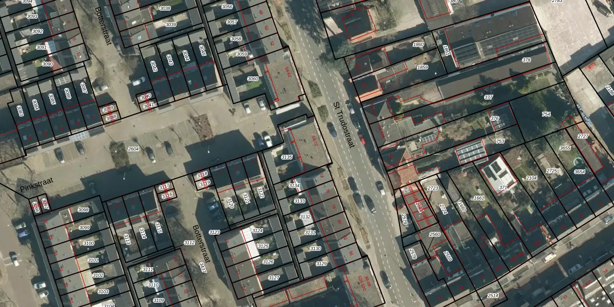St Trudostraat 66 is gelegen op kadastraal perceel STR03D3135. Deze kadastrale aanduiding is uniek en wordt gebruikt door het Kadaster om eigendomsrechten en andere zakelijke rechten vast te leggen. Het perceel maakt onderdeel uit van de kadastrale gemeente Strijp.