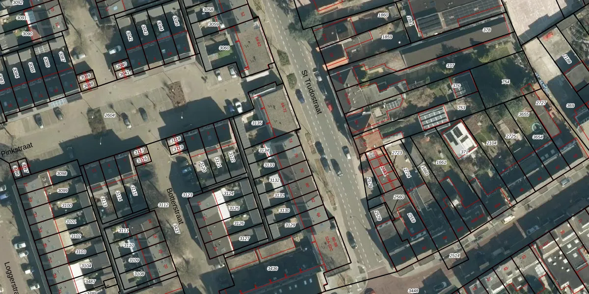 St Trudostraat 74 is gelegen op kadastraal perceel STR03D3134. Deze kadastrale aanduiding is uniek en wordt gebruikt door het Kadaster om eigendomsrechten en andere zakelijke rechten vast te leggen. Het perceel maakt onderdeel uit van de kadastrale gemeente Strijp.