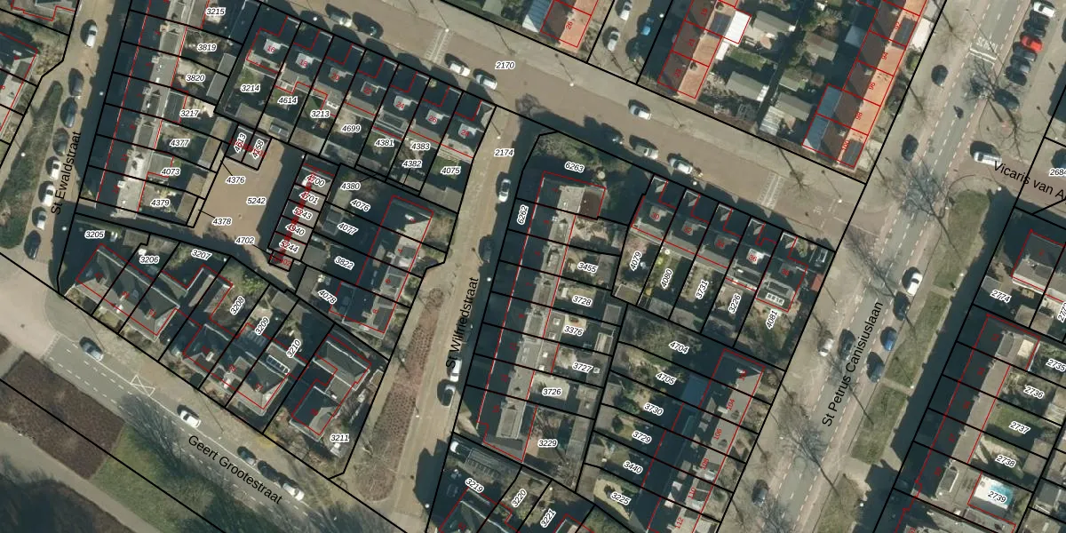 St Wilfriedstraat 5 is gelegen op kadastraal perceel STM00E3455. Deze kadastrale aanduiding is uniek en wordt gebruikt door het Kadaster om eigendomsrechten en andere zakelijke rechten vast te leggen. Het perceel maakt onderdeel uit van de kadastrale gemeente Stratum.