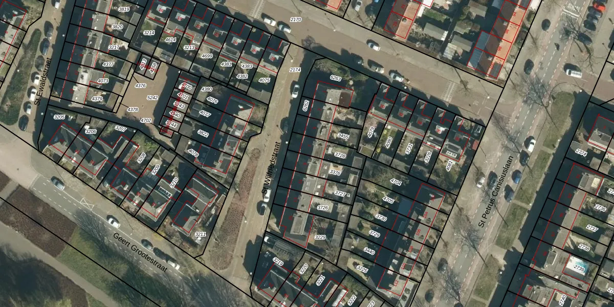 Gebruik de zoekbalk of klik op een perceel voor informatie over de adressen binnen dit perceel.