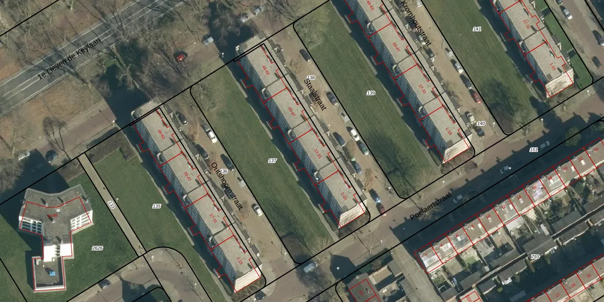 Het perceel waarop Staalstraat 25 staat heeft een oppervlakte van 2042 m². Dit is een zeer groot perceel. De perceeloppervlakte wordt geregistreerd door het Kadaster. Gedetailleerde informatie over de maten van dit perceel kunt u vinden in het rapport Kadastrale kaart met maatvoering van Staalstraat 25.