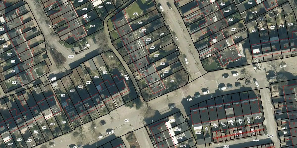 Het perceel waarop Stapelen 25 staat heeft een oppervlakte van 219 m². Dit is een middelgroot perceel. De perceeloppervlakte wordt geregistreerd door het Kadaster. Gedetailleerde informatie over de maten van dit perceel kunt u vinden in het rapport Kadastrale kaart met maatvoering van Stapelen 25.