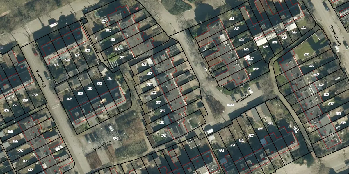 Het perceel waarop Stapelen 8 staat heeft een oppervlakte van 197 m². Dit is een middelgroot perceel. De perceeloppervlakte wordt geregistreerd door het Kadaster. Gedetailleerde informatie over de maten van dit perceel kunt u vinden in het rapport Kadastrale kaart met maatvoering van Stapelen 8.