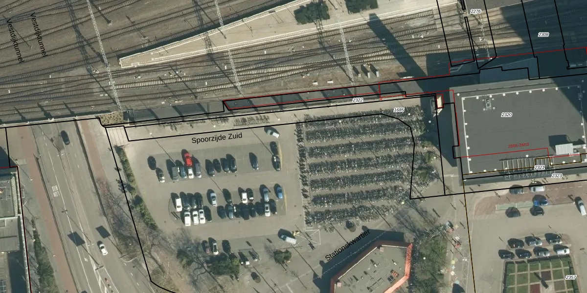 Het perceel waarop Stationskwartier 40-004 staat heeft een oppervlakte van 1,4 ha. Dit is een zeer groot perceel. De perceeloppervlakte wordt geregistreerd door het Kadaster. Gedetailleerde informatie over de maten van dit perceel kunt u vinden in het rapport Kadastrale kaart met maatvoering van Stationskwartier 40-004.