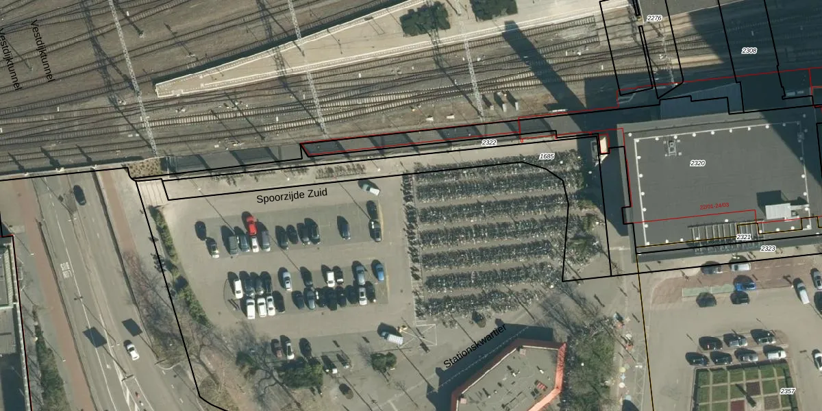 Het perceel waarop Stationskwartier 40-006 staat heeft een oppervlakte van 1,4 ha. Dit is een zeer groot perceel. De perceeloppervlakte wordt geregistreerd door het Kadaster. Gedetailleerde informatie over de maten van dit perceel kunt u vinden in het rapport Kadastrale kaart met maatvoering van Stationskwartier 40-006.