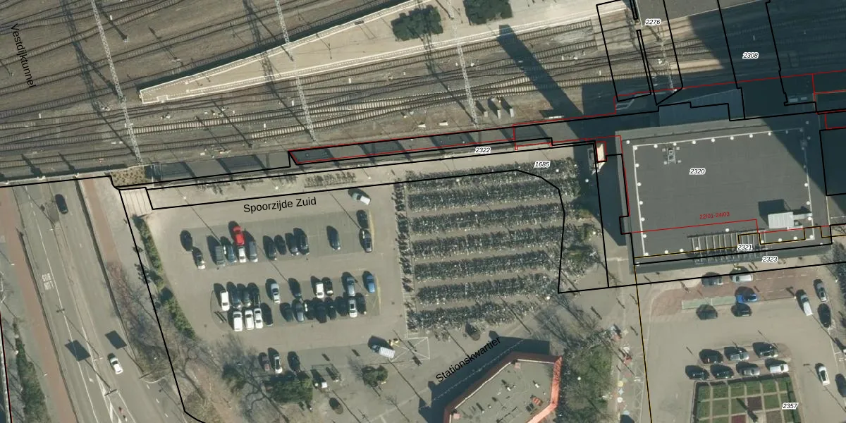 Het perceel waarop Stationskwartier 40-009 staat heeft een oppervlakte van 1,4 ha. Dit is een zeer groot perceel. De perceeloppervlakte wordt geregistreerd door het Kadaster. Gedetailleerde informatie over de maten van dit perceel kunt u vinden in het rapport Kadastrale kaart met maatvoering van Stationskwartier 40-009.