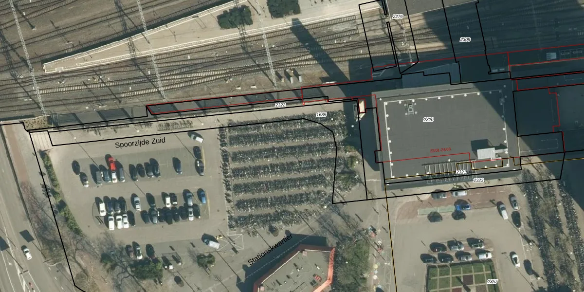 Het perceel waarop Stationskwartier 40-060 staat heeft een oppervlakte van 1,4 ha. Dit is een zeer groot perceel. De perceeloppervlakte wordt geregistreerd door het Kadaster. Gedetailleerde informatie over de maten van dit perceel kunt u vinden in het rapport Kadastrale kaart met maatvoering van Stationskwartier 40-060.