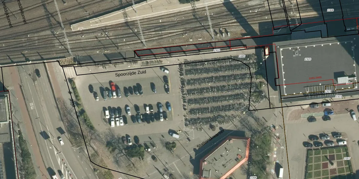 Het perceel waarop Stationskwartier 40-084 staat heeft een oppervlakte van 1,4 ha. Dit is een zeer groot perceel. De perceeloppervlakte wordt geregistreerd door het Kadaster. Gedetailleerde informatie over de maten van dit perceel kunt u vinden in het rapport Kadastrale kaart met maatvoering van Stationskwartier 40-084.
