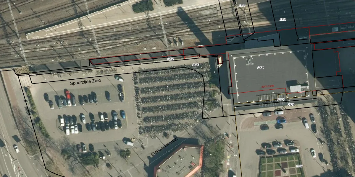 Het perceel waarop Stationskwartier 40-099 staat heeft een oppervlakte van 1,4 ha. Dit is een zeer groot perceel. De perceeloppervlakte wordt geregistreerd door het Kadaster. Gedetailleerde informatie over de maten van dit perceel kunt u vinden in het rapport Kadastrale kaart met maatvoering van Stationskwartier 40-099.