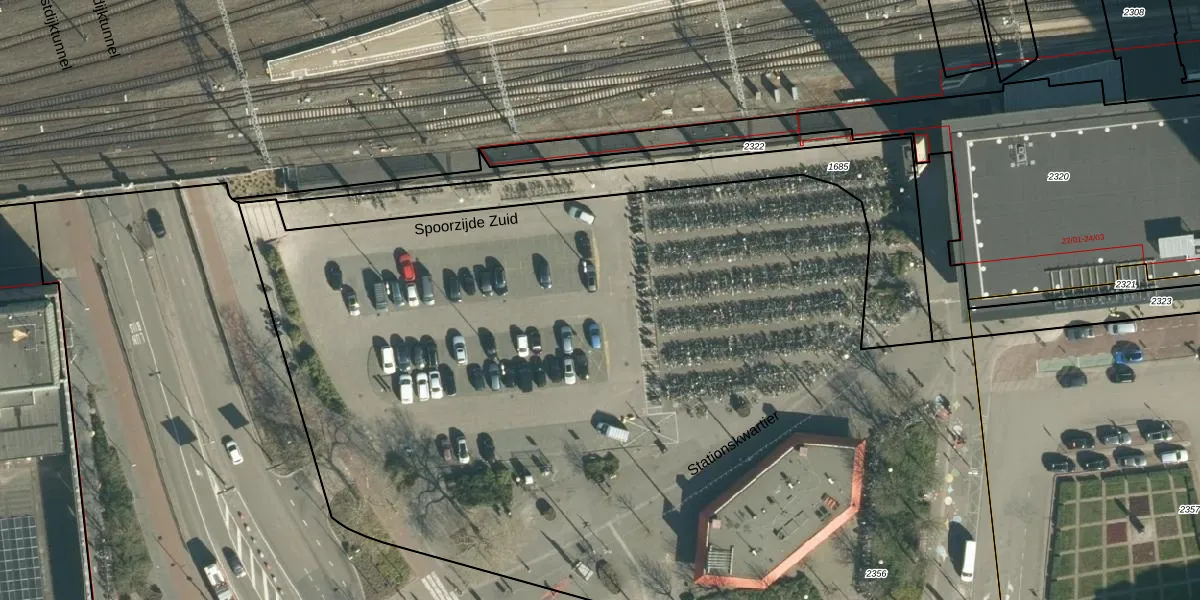 Het perceel waarop Stationskwartier 40-121 staat heeft een oppervlakte van 1,4 ha. Dit is een zeer groot perceel. De perceeloppervlakte wordt geregistreerd door het Kadaster. Gedetailleerde informatie over de maten van dit perceel kunt u vinden in het rapport Kadastrale kaart met maatvoering van Stationskwartier 40-121.